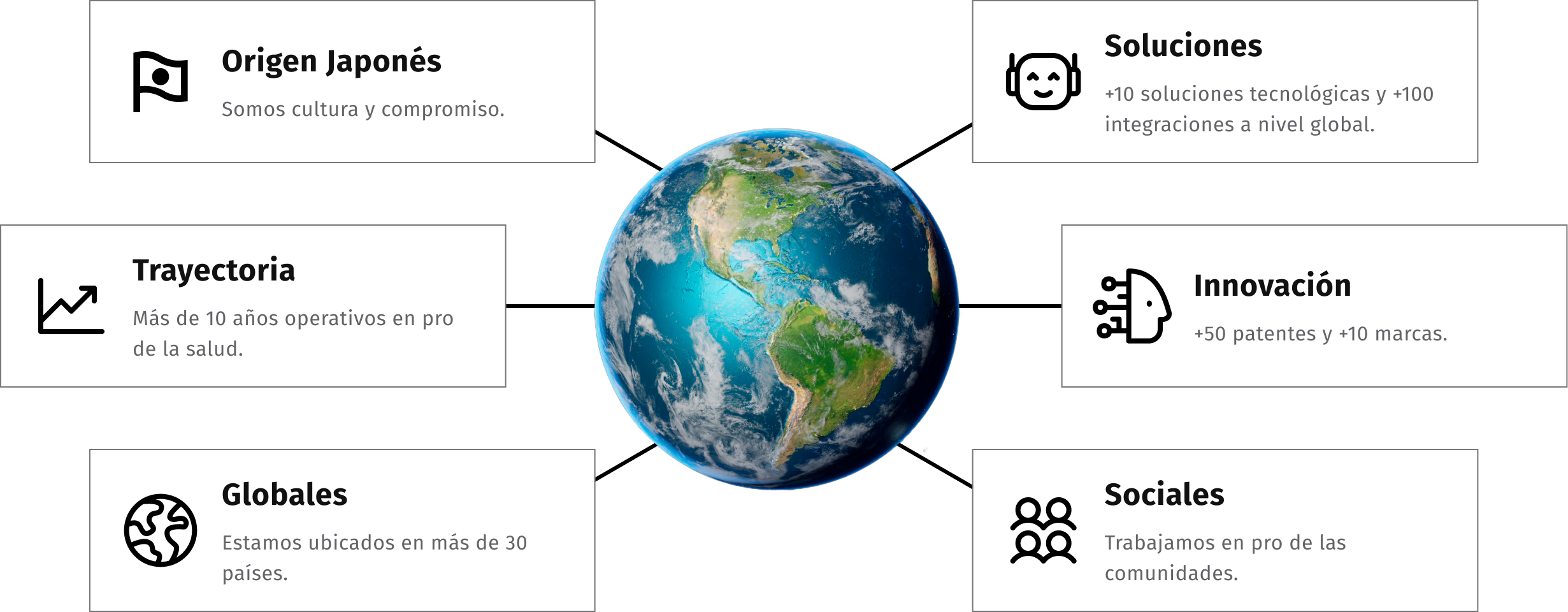 Ser el referente en salud digital transformadora en Latinoamérica, conectando a personas, territorios y sistemas de salud mediante innovación japonesa de vanguardia, adaptada a la realidad local.